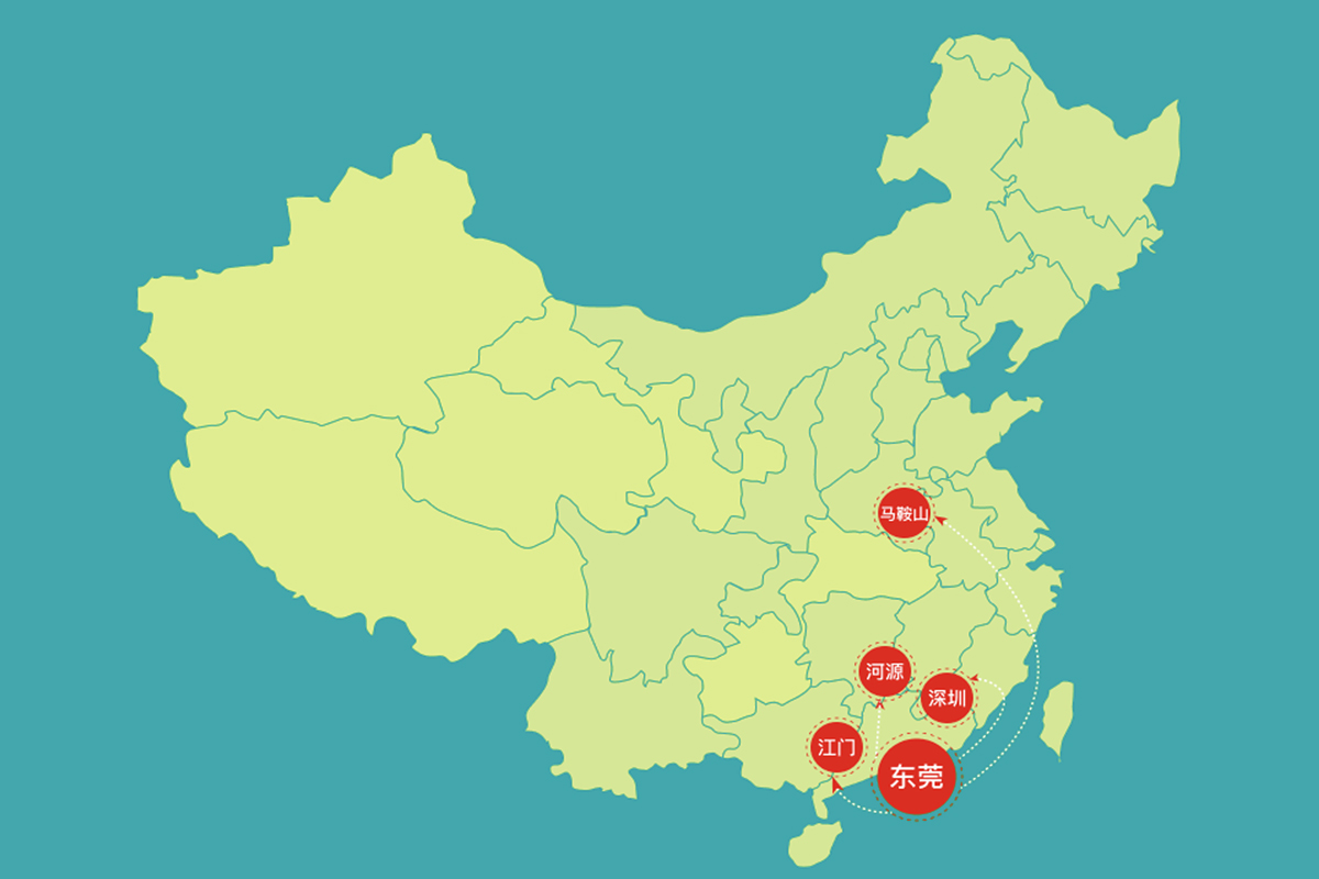 集團(tuán)擁有東莞、江門、河源、深圳、馬鞍山等5個(gè)生產(chǎn)基地,公司的生產(chǎn)、倉(cāng)庫(kù)、辦公及宿舍等占地面積超過(guò)200畝,從業(yè)人員達(dá)1000余人。